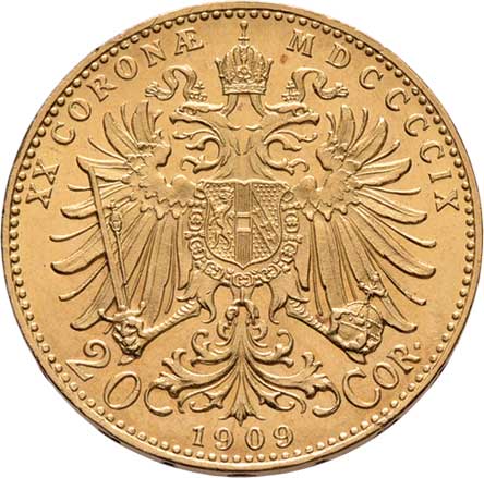 | 75. | 20 Koruna 1909 - Marschall, 6.767g, nep.hr.,