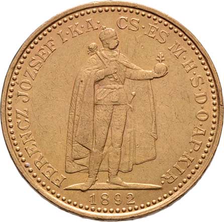 | 96. | 10 Koruna 1892 KB, 3.369g, dr.hr., dr.rysky, pěkná