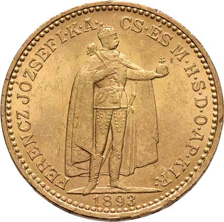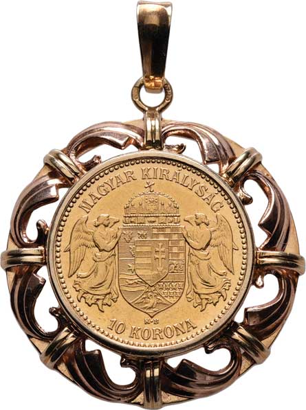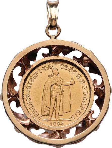 | 97. | 10 Koruna 1894 KB (Au900, cca 3.39g), vsazena