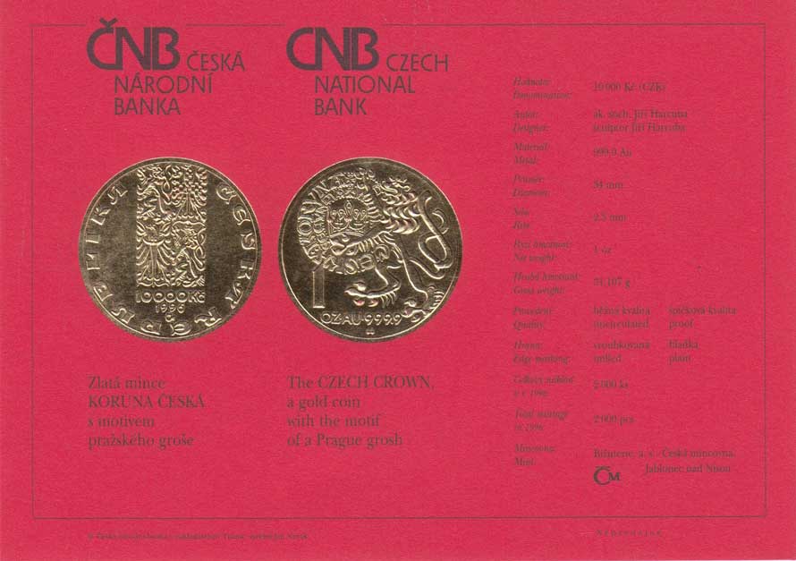 | 119. | 10000 Koruna 1996 - české mince - Pražský groš, KM.21