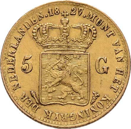 | 188. | 5 Gulden 1827, Utrecht, KM.60 (Au900), 3.364g,