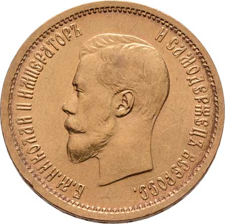 | 212. | 5 Rubl 1901 FZ, Petrohrad, Y.62 (Au900), 4.275g,