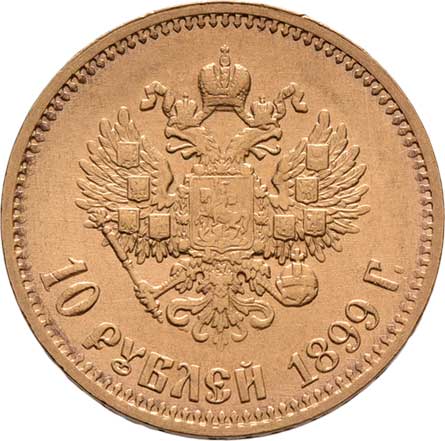 | 207. | 10 Rubl 1899 AG, Petrohrad, Y.64 (Au900), 8.598g,