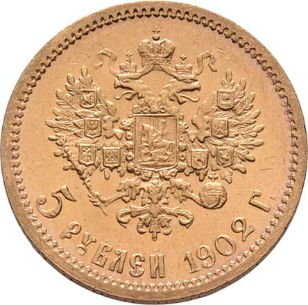 | 213. | 5 Rubl 1902 AR, Petrohrad, Y.62 (Au900), 4.303g,
