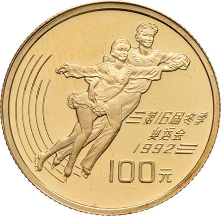 | 282. | 100 Yuan 1991 - ZOH Albertville 1992 - krasobruslaři,