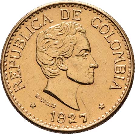 | 299. | 5 Peso 1927 - chyba v ozn.mincovny "MFDFLLIN", KM.204