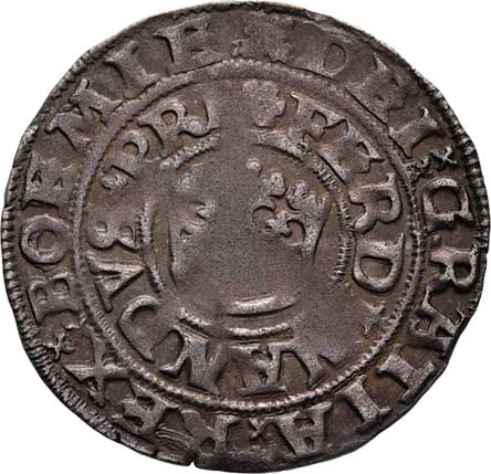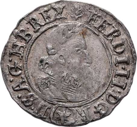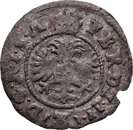 "FERDINANDVS+PRI", královská koruna, jako MKČ.71, 2.427g, dr.vady materiálu, nedor., pěkná patina R! |