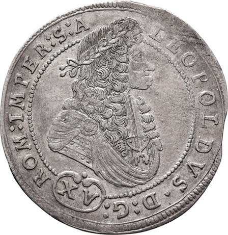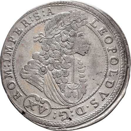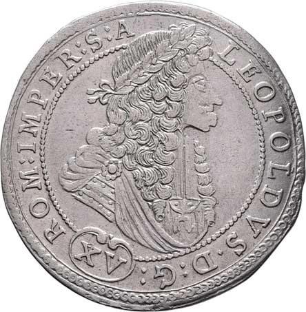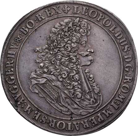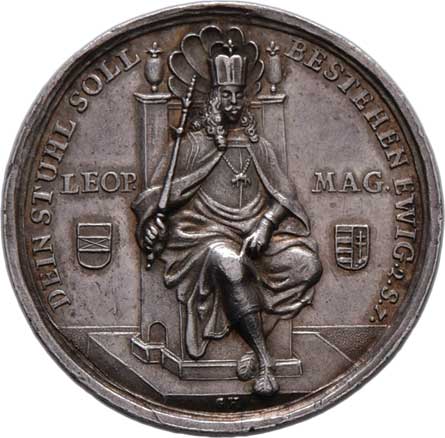 trůnící Leopold I., znaky, písmo / pevnost v krajině, písmo, Sign.GH, Ag 30mm, 9.634g, dr.hr., nep.rys. R! |
