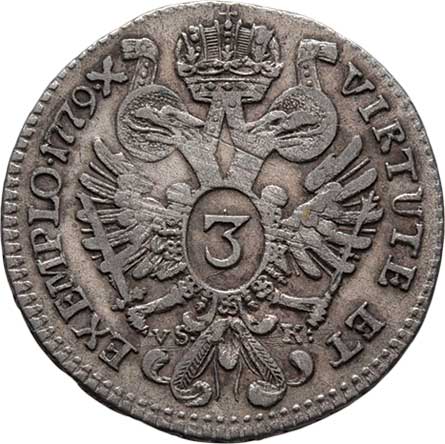 | 587. | 3 Krejcar 1779 C/VS-K, Praha, P.12, MKČ.2018, 1.555g,