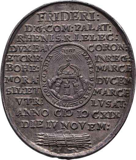 | 590. | Oválná pamětní medaile na korunovaci v Praze 1619 -
