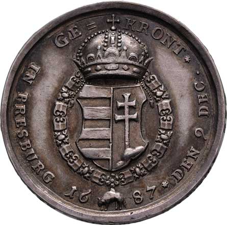 | 596. | Hautsch - menší medaile na uherskou korunovaci 1687 -