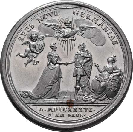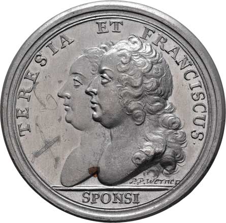 | 599. | Werner - cín. svat. medaile 1736 - dvojportrét zleva,