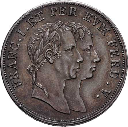dvojportrét Františka II. a Ferdinanda, opis/ koruna, nápis, Ag 24mm, 5.462g, M.2516, Nov.A.5b, nep.hr. R! |