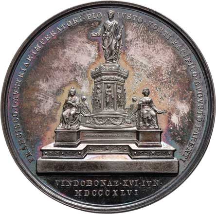 poprsí císaře zleva, opis /slavnostní scéna v Terstu, opis a nápis, Sign., bronz 58 mm, H.3751(Ag), patina |