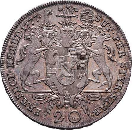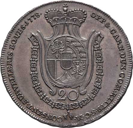 | 625. | 20 Krejcar 1778, Poprsí zprava, opis / korunov. znak