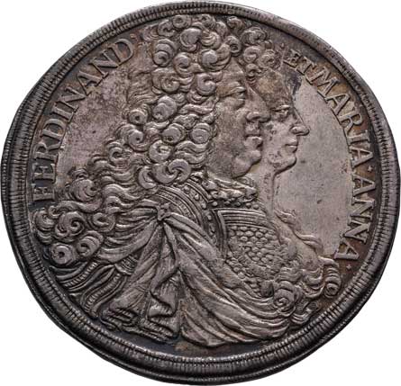 v ozdobné kartuši, Ag 31mm, 9.551g, PR.54, Don.3502, BPM.184, na hraně nep.stopy po zasazení, nep.rysky R! |