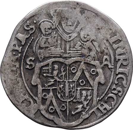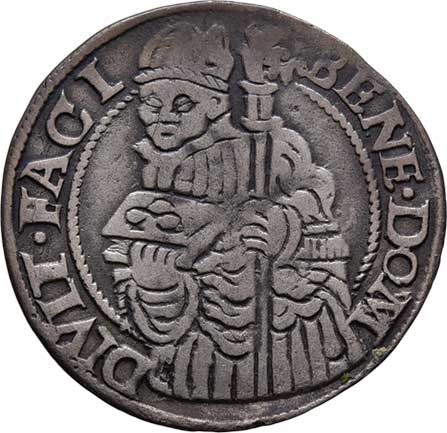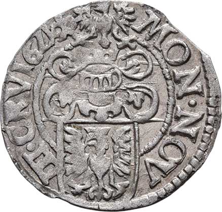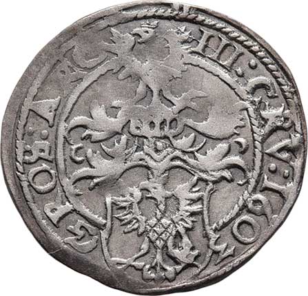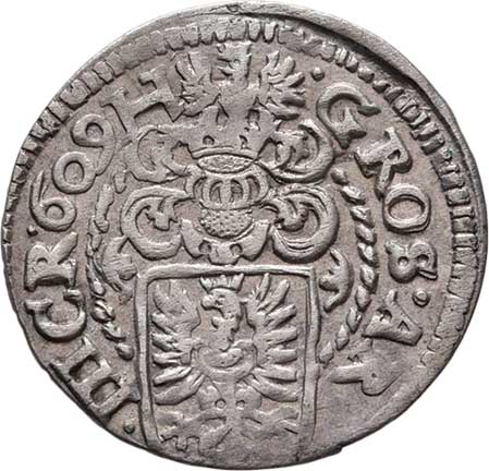 | 622. | Početní groš 1592, znak, opis/ 5-řád.nápis v kartuši,