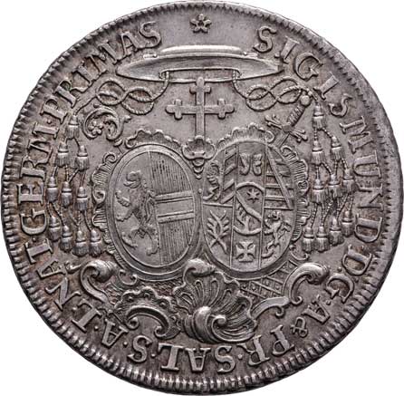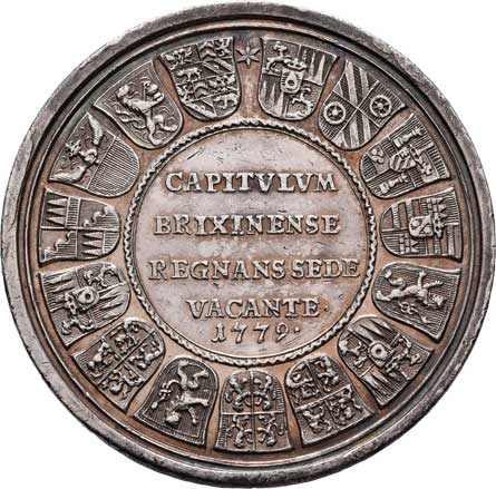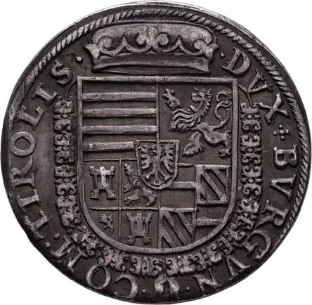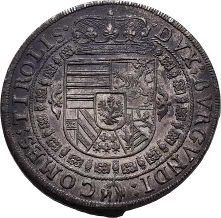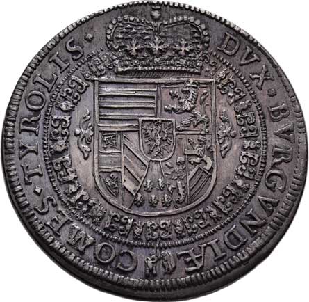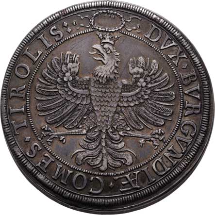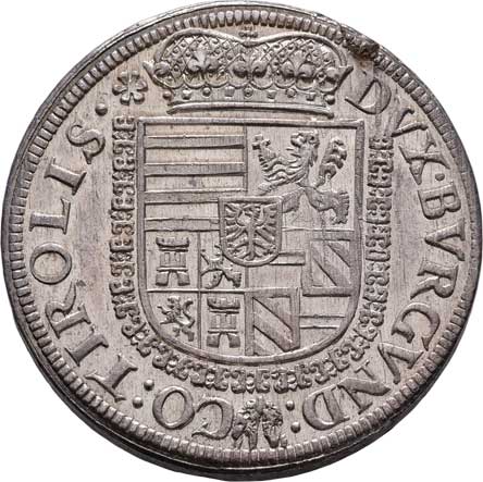 šat, znak s řádem Zlatého rouna, koruna s perlami, ".TIROLIS.", 28.401g, nepravidelný okraj., pěkná pat. |