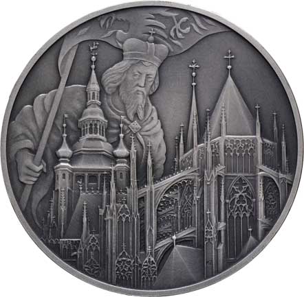 mírně zleva, opis / Čechie se lvem, Pražský hrad, opis, 42mm, ČS.1508, Don.3156, dr.hr., dr.rysky, úhoz |