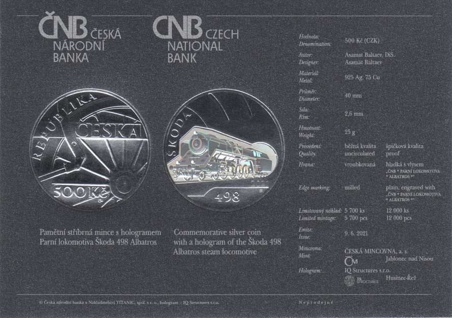 | 674. | 500 Koruna 2021 - Parní lokomotiva Škoda Albatros