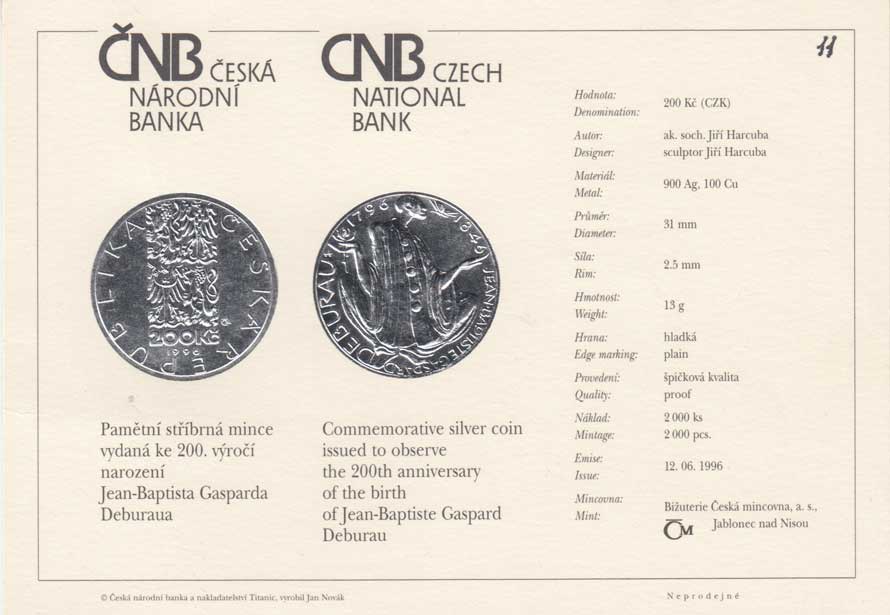 | 678. | 200 Koruna 1996 - 200 let narození Jeana G. Deburaua,