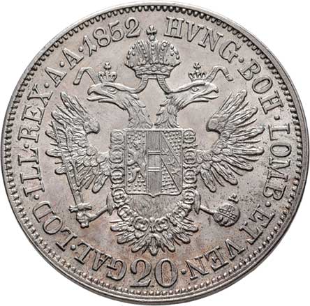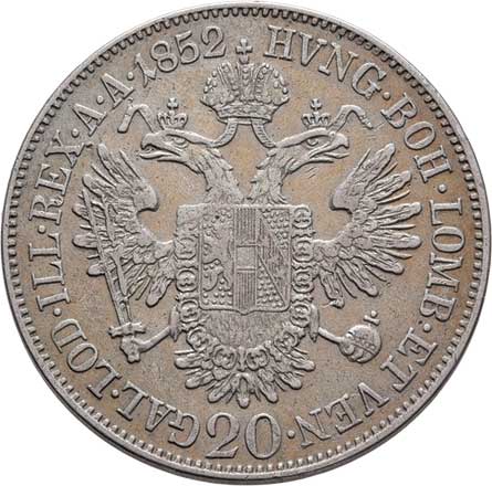 | 762. | 20 Krejcar 1852 A - hlava zleva, 6.557g, nep.hr.,