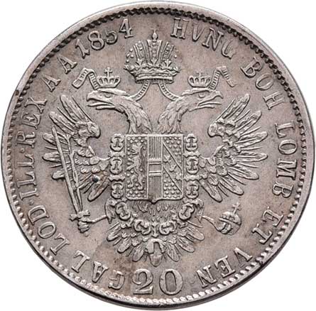 | 765. | 20 Krejcar 1854 C, 4.326g, nep.hr., nep.rysky,
