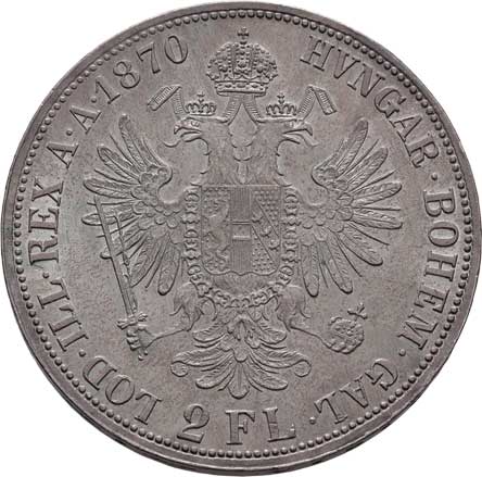 | 775. | 2 Zlatník 1870 A, 24.658g, nep.hr., nep.rysky, krásná