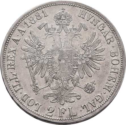 | 779. | 2 Zlatník 1881, 24.555g, nep.hr., nep.rysky, pěkná