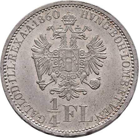 | 790. | 1/4 Zlatník 1860 A, 5.312g, nep.hr., krásná patina R! | 0/0 | 6000,- | --.- |