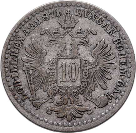 | 794. | 10 Krejcar 1871, 1.612g, nep.hr., nep.rysky, pěkná