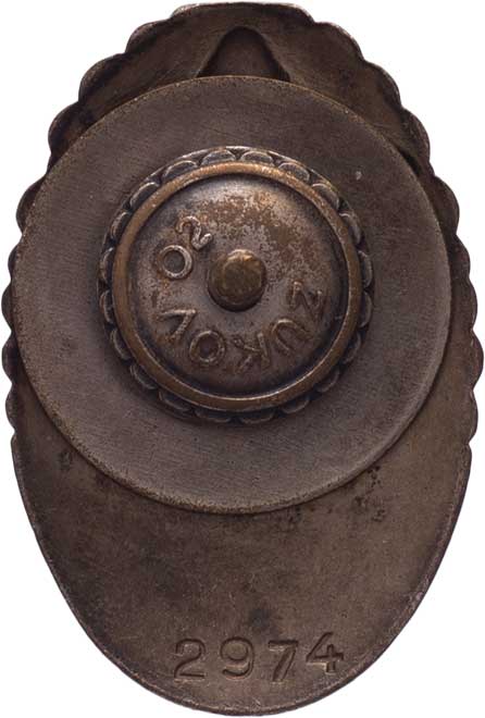černě lakovaná mosaz 33x57 mm s upínací patkou, ex ČNS Praha - aukce 68/1854 |