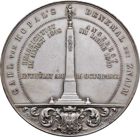 - poprsí čelně, dubový věnec, písmo / pomník, znak, písmo, Sign., postř.měď 64mm, 114.533g, nep.hr., tém. |