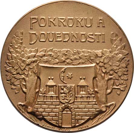 městský znak, český opis / tři postavy, německý opis, bronz 44mm, 32.767g (silnější), ŠFP.9c, uděleno 30ks |