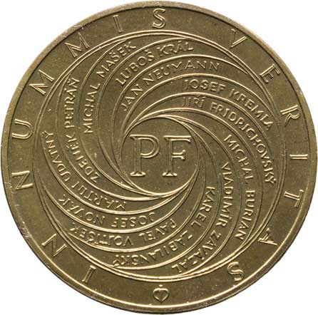 moto Pravda vyděsí, vročení, opis / jména vydavatelů, velké "PF", Sign., mosaz 30mm, 12.217g, raženo 49ks |