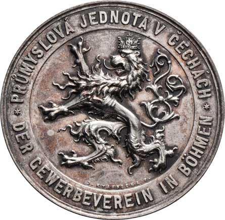 český lev s praporcem / lipová a dubová ratolest, český a něm. nápis, Sign., 43mm, 30.612g, ŠFP.17(f) |