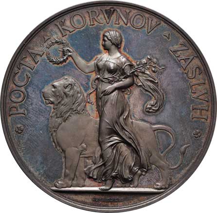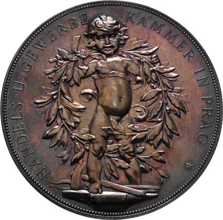 hlava Čechie zleva, opis/ stoj. Putti s věncem, opis, Sign., Ag800, 56mm, 66.932g, ŠFP.8b, uděleno 33ks R! |