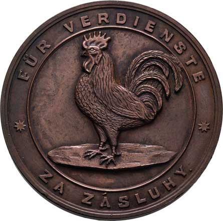 český lev, dvojitý opis / kohout zleva, opis, Sign., měď 43mm, 38.687g, ŠFP.13b, uděleno 11ks, nep.hr. RR! |