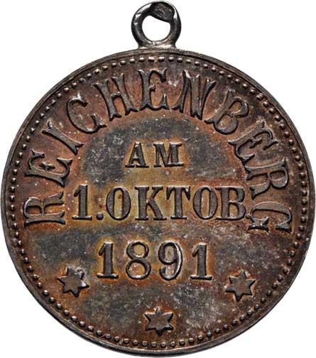 zprava, německý opis / městský znak, vročení, německý opis, Nesign., mosaz 37 mm s raženým ouškem a stužkou |