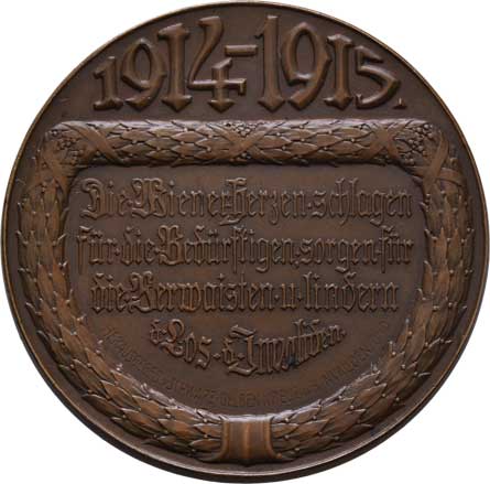 lev, dva opis / úl a včely, věnec a opis, Sign., bronz 40mm, 28.842g (uděleno 9 ks), krásná patina RR! |