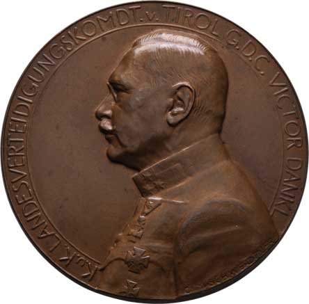 poprsí zprava, italský opis / tyrolská orlice, nápis, Sign.Christlbauer, Ag 44mm, 28.728g, patina, pův.etue |