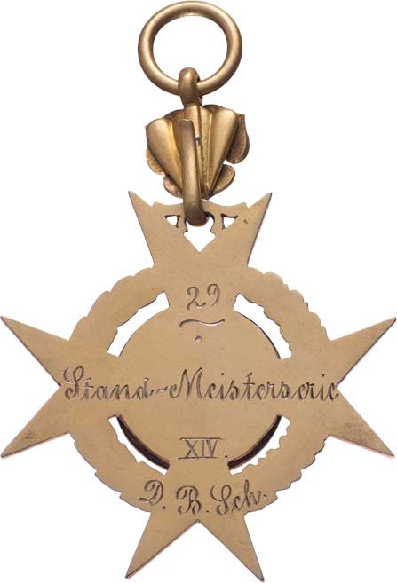 Meisterserie 29./XIV. D.B.Sch., Nesign., zlacený a smatovaný bronz 48x48 mm s pův.závěsem, pošk.smalt |