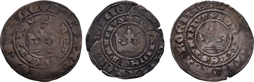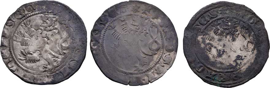1x s tečkou pod lvem, 1x olámaný okraj, nedor., skvrnky, patina 3ks |