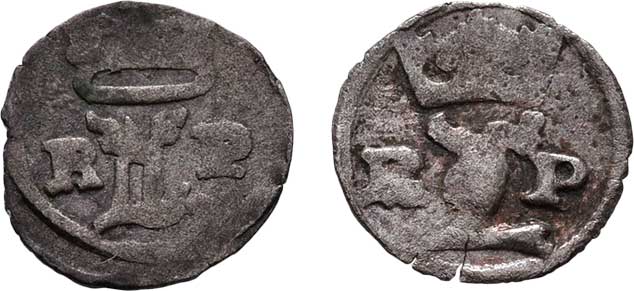 Kop. a Fried. uvádí podob. ražbu, ale s opisy na obou stranách, 0.213g, exc., nedor., pěkná patina R! |
