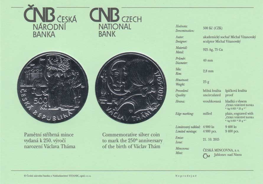 | 1700. | 500 Koruna 2015 - 250 let narození Václava Tháma