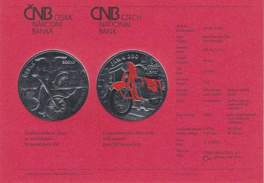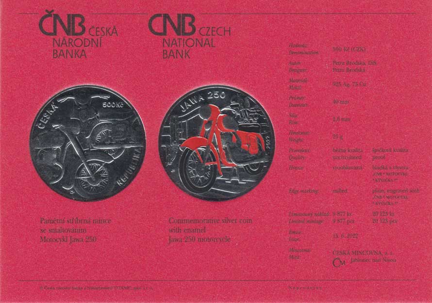 | 1702. | 500 Koruna 2022 - motocykl Jawa 250, (Ag925, 25.0g,