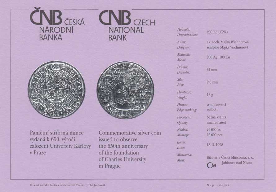 | 1707. | 200 Koruna 1998 - Karel IV. - 650 let university,