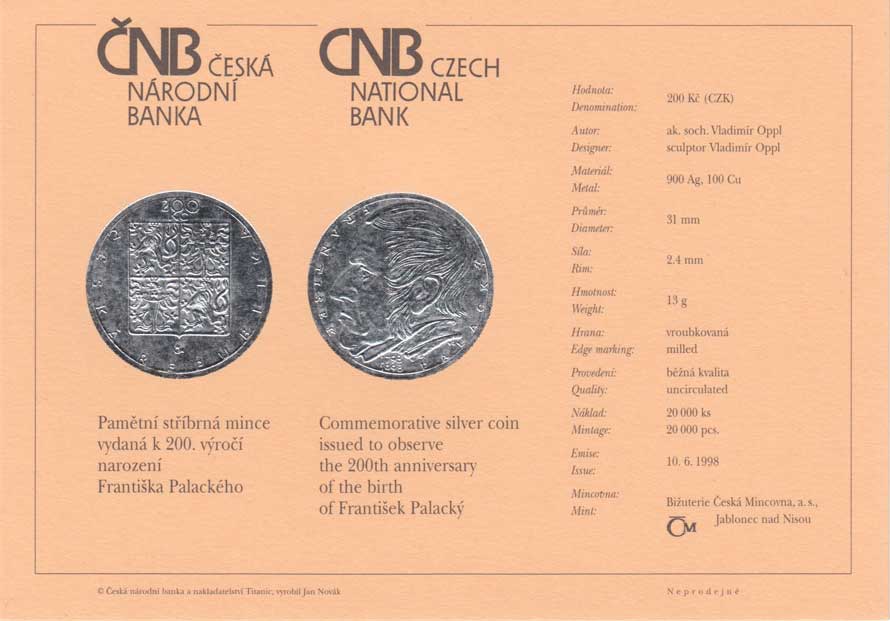 | 1708. | 200 Koruna 1998 - 200 let narození F.Palackého, KM.31