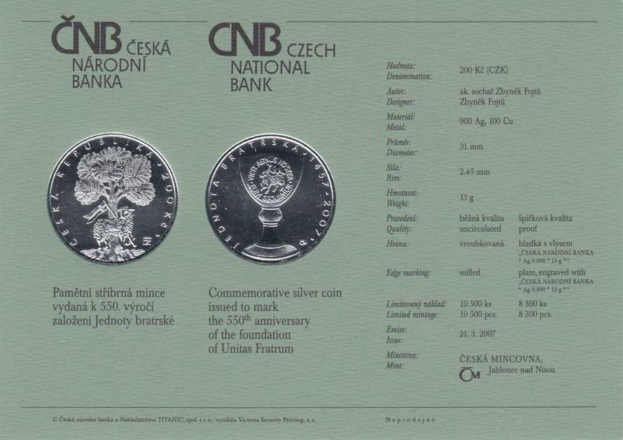 | 1713. | 200 Koruna 2007 - 550 let založení Jednoty bratrské,
