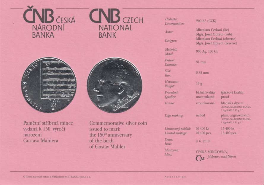 | 1716. | 200 Koruna 2010 - 150 let narození Gustava Mahlera,